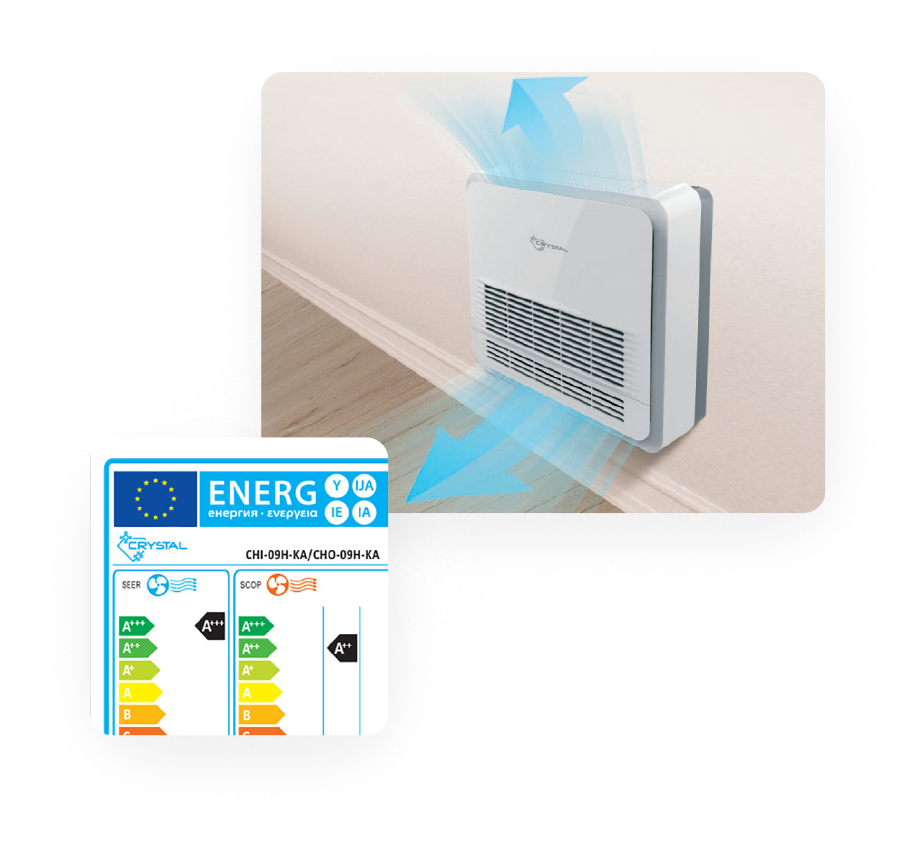 Crystal внедрява най-новите иновативни технологии за енергийна ефективност и опазване на околната среда. Всички продукти използват високоефективни инверторни компресори, които намаляват разхода на енергия и осигуряват стабилна работа при минимален въглероден отпечатък. Благодарение на модерните системи за управление, Crystal гарантира оптимално използване на ресурсите – от Wi-Fi контрол и адаптивни режими, до използване на екологични хладилни агенти като R32.